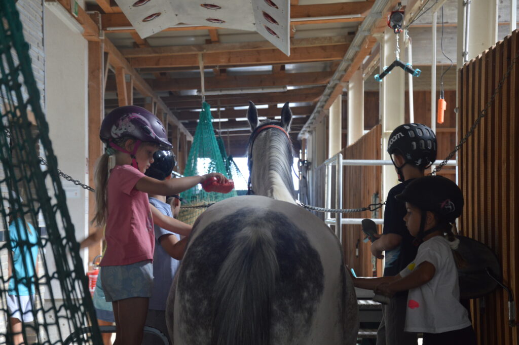 Heuer starteten unsere drei Wochen gleich mit einer richtigen Hitzewelle! In der ersten Woche war es so heiß, dass Abkühlung im Wasser natürlich nicht fehlen durfte. Danach wurde es zum Glück etwas angenehmer, und wir konnten viele tolle Aktivitäten im Stall machen – von Reiten ohne Sattel über Hindernisparcours bis hin zum kreativen Pferdebemalen. Die Kinder und auch wir hatten drei wundervolle Wochen und freuen uns schon jetzt auf das nächste Jahr!